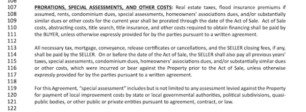 The seller must pay their own closing fees, which typically include costs to cancel mortgages and other liens, any transfer taxes imposed by the local municipality, all unpaid municipal taxes, and any legal work necessary to clear the title to the property. The seller must also pay all outstanding HOA or condo dues and special assessments currently against the property. (NOTE: Any upcoming special assessments will be the buyer’s responsibility, so it is important to investigate this.)