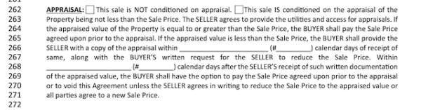 Whether the property’s sale is conditioned on an appraisal must be noted on lines 262-271.