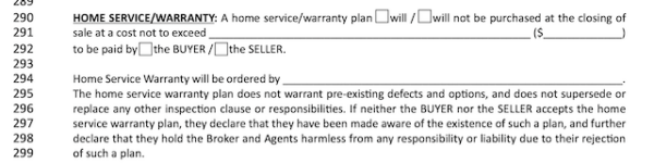 In this segment, a home warranty is discussed. If the buyer wants the seller to provide a home warranty, they should notate that in the appropriate boxes. The amount that the seller agrees to pay for the home warranty premium must also be included.