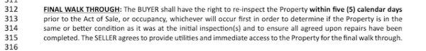 The seller must also keep utilities on for the final walk-through and provide access.