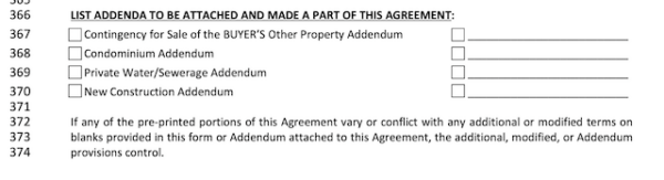 Lines 366-374 indicate whether any addenda are attached to the contract.