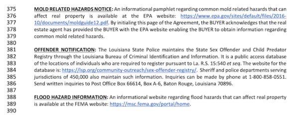 Lines 375-379 are to inform you about mold-related hazards. By initialing this page of the contract, the buyer acknowledges that they have the link and can obtain more information about mold and its associated risks.
