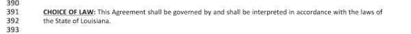 This section states that the contract will be interpreted under Louisiana law. Even if the buyer or seller lives in another state, this will be governed by Louisiana state law.