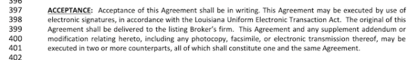 This is the last section of the Louisiana residential agreement to buy or sell, where you provide the other party with the contract’s expiration date.