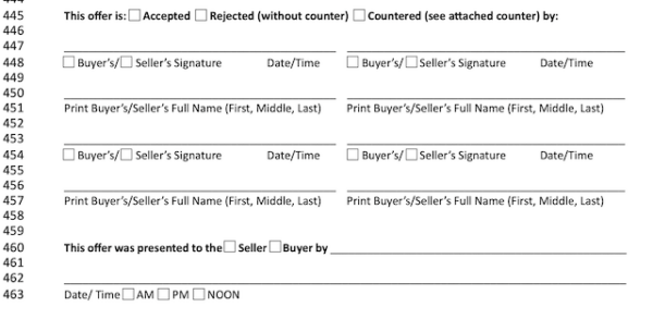 There are also lines for buyer and seller agents to annotate when they present the offers to their clients.