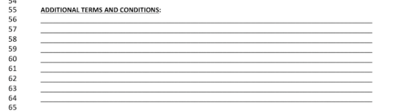 Lines 55-64 are included for any additional terms and conditions that the buyer would like to add to the contract.